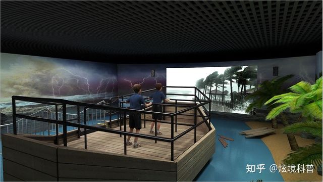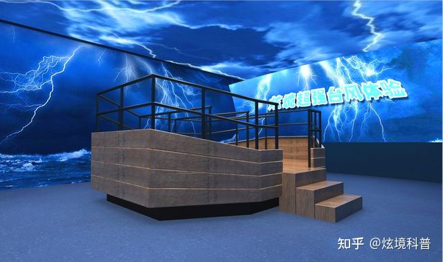 臺風(fēng)體驗館現(xiàn)場模擬效果逼真,音效一流,立體感強。運用影音、風(fēng)效和電子噴霧技術(shù),通過噴霧、燈光、出風(fēng)、音響、影像多媒體等系統(tǒng),為體驗者模擬出一個臺風(fēng)來臨時的真實場景。